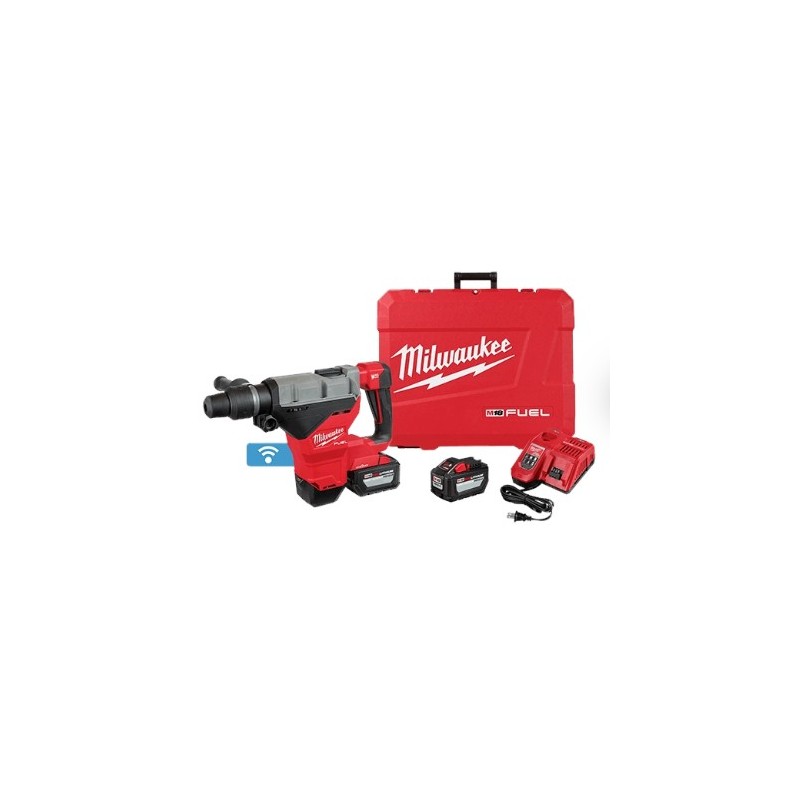 Además del martillo rotativo SDS MAX, este kit incluye dos baterías M18™ REDLITHIUM™ HIGH OUTPUT™ HD12.0, un cargador de batería rápido y un estuche de viaje duradero.